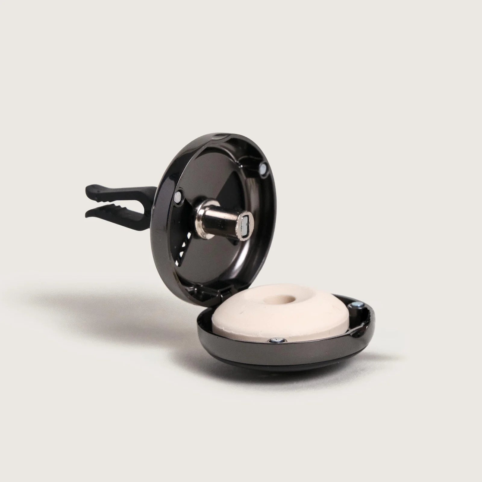 De Autodiffuser ON/OFF zwart met het parfum Velours d'Orient valt op door het Gun metal/Zwarte design, elegant passend in jouw auto. Dankzij de verstelbare intensiteit stem je de parfumverspreiding af op jouw wensen, voor een persoonlijke ervaring bij elke rit.